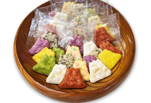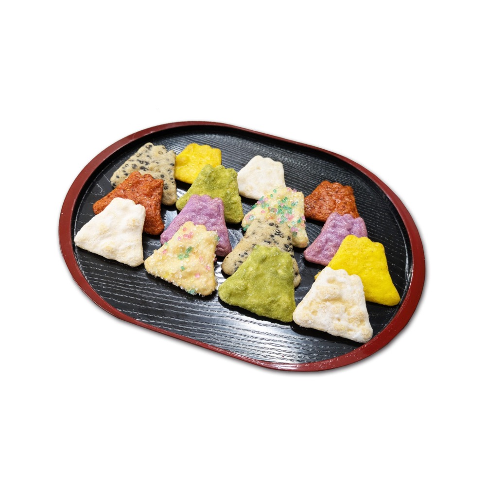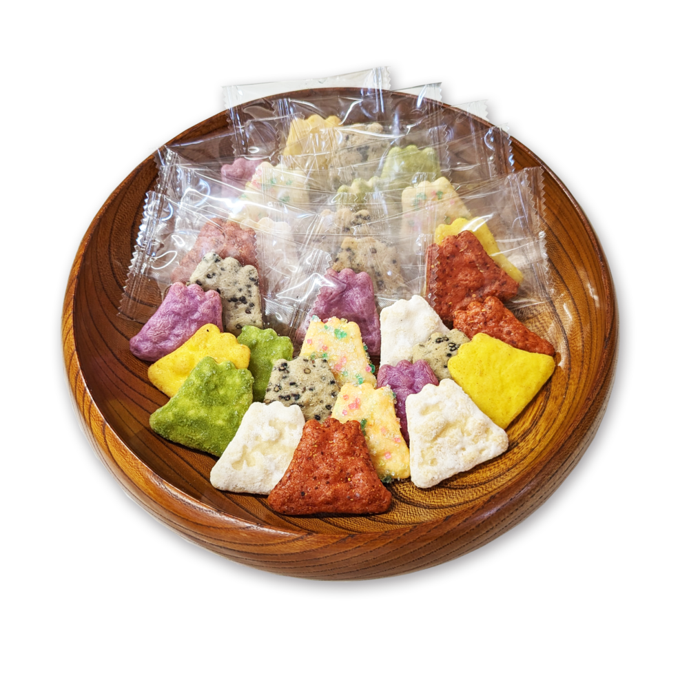 世界文化遺産登録された富士山をかたちどった、ひとくちサイズのおせんべいです。