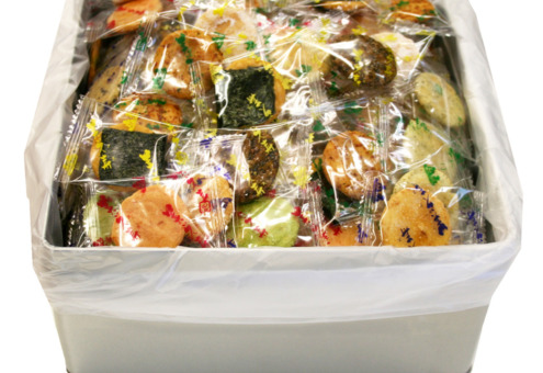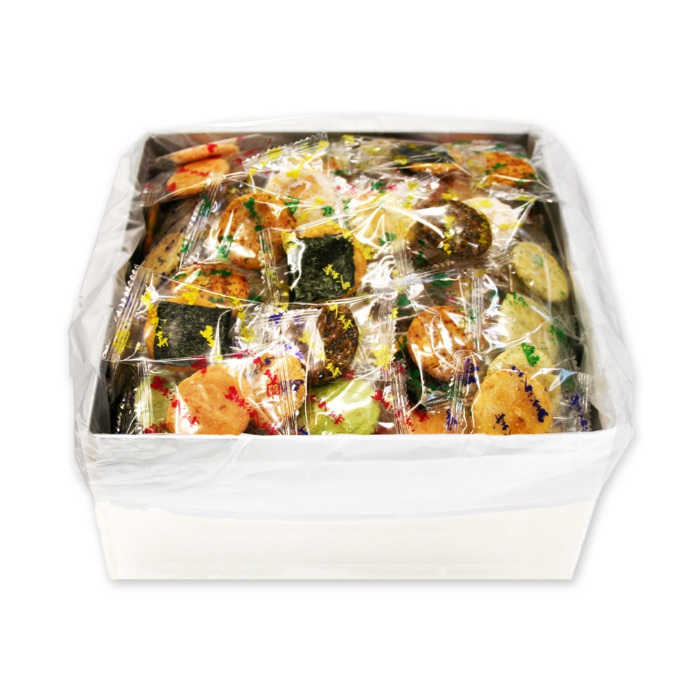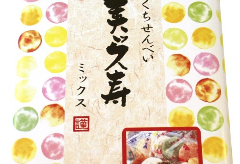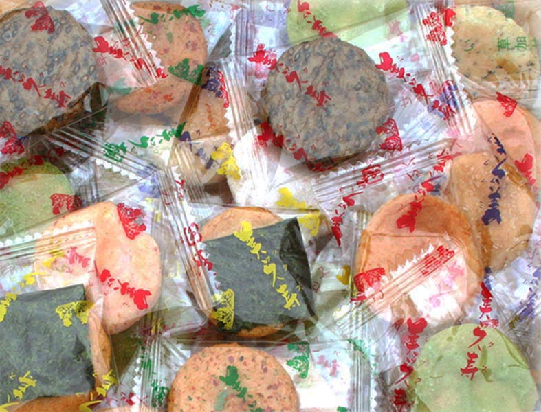 | 原材料 | うるち米(国産)、砂糖、ごま、醤油、植物油、七味唐辛子、海苔、食塩、あおさ海苔、えび粉、粉末醤油、でん粉、みりん、昆布エキス、抹茶、乾燥卵白/糊料(加工デンプン)、調味料(アミノ酸等)、着色料(紅麹、カラメル)、(一部にえび・小麦・卵・ごま・大豆を含む) |